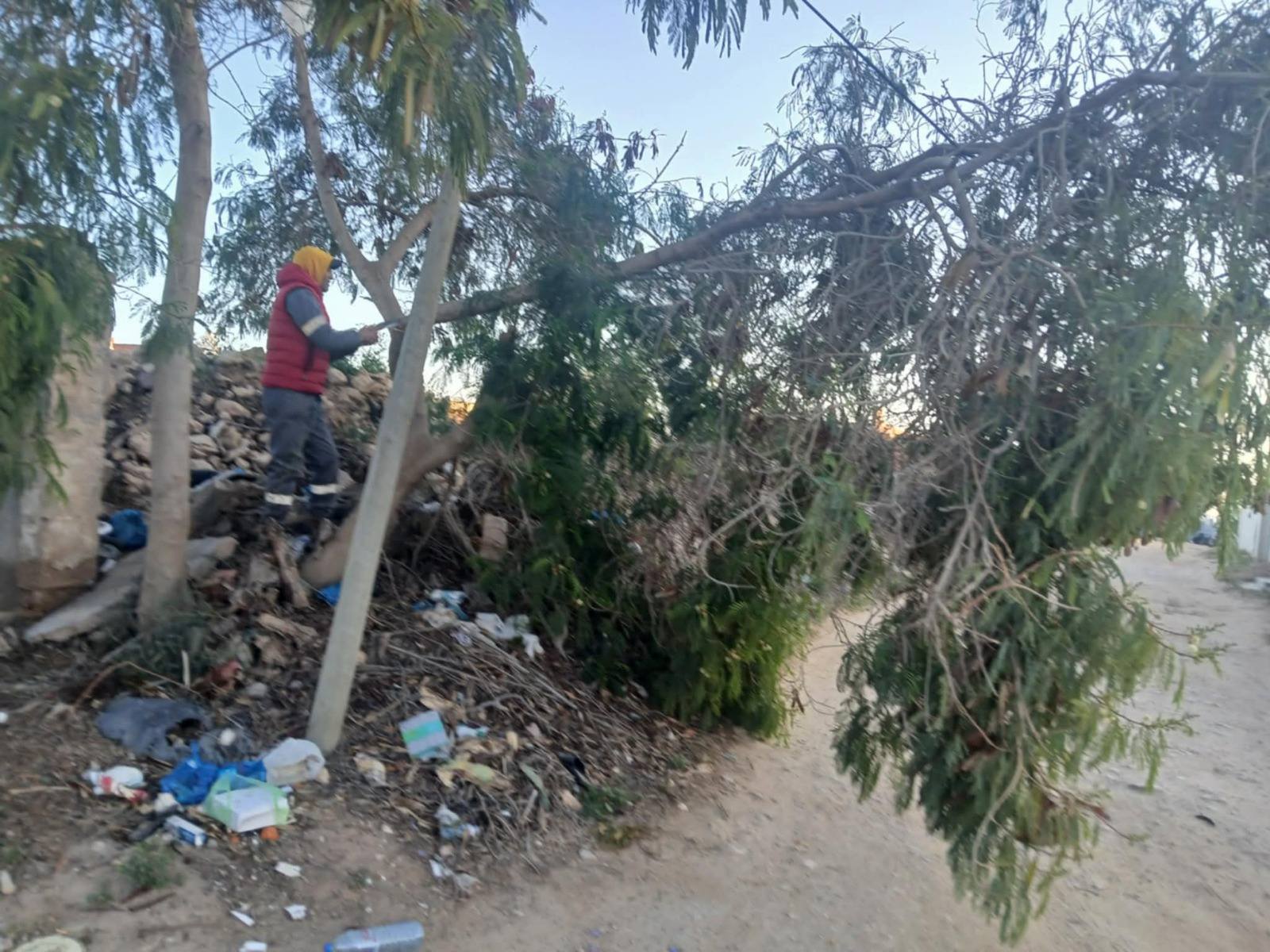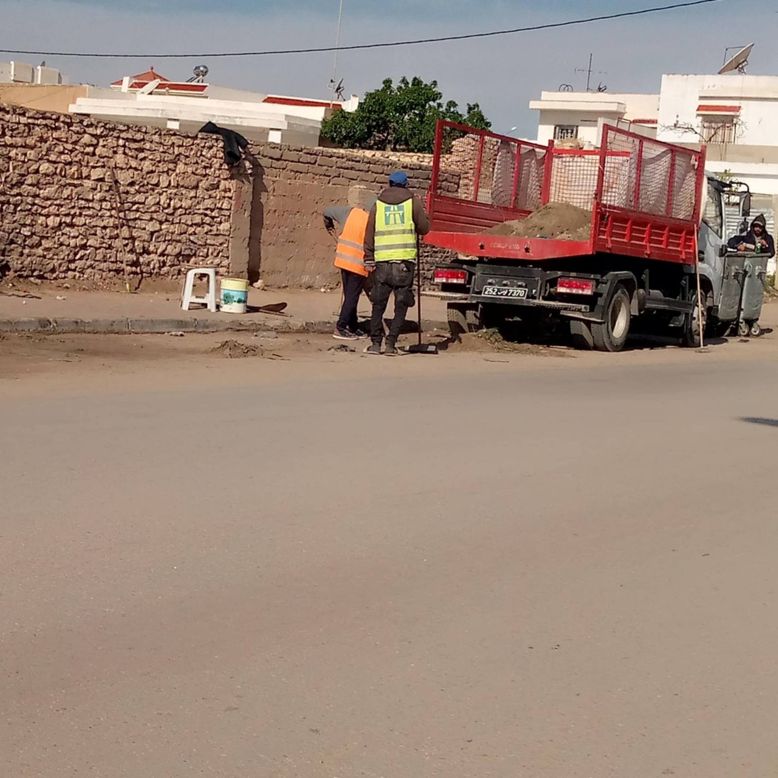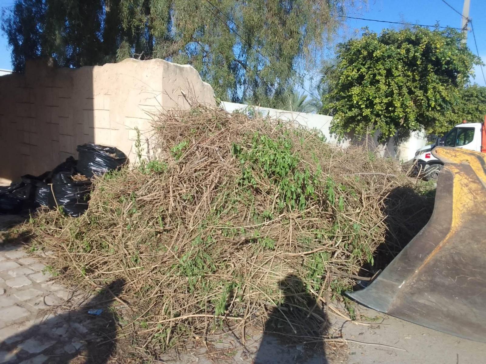 طريق العين الرئيسي طريق الافران الرئيسي طريق منزل شاكر الرئيسي سيدى الخافي سيدي الجيلانى شارع البيئة العين منزل شاكر رفع عدد 04وصولات زبيرة مقاول الكنس: طريق الافران الرئيسي البستنة: طريق العين الرئيسي  طبيعة التدخلات: - رفع المصبات العشوائية - كنس الطرقات - رفع الفضلات المختلفة - تنظيف حواشي الطرقات - تقليع الاعشاب تقليم الأشجار الكمية المرفوعة: 32 طنّ من الفضلات المختلفة